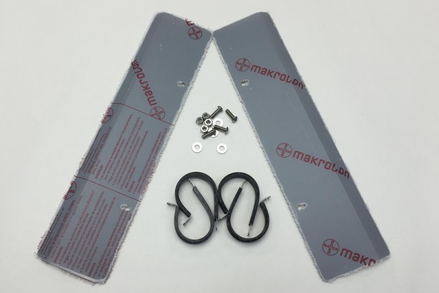 16" SIDE WIND DEFLECTORS SMOKE TINTED 3/16" THESE HELP DEFLECT THE WIND FROM COMING IN THE UTV. *** INCLUDED WITH ITEM *** 2 - SIDE DEFLECTORS 4 - RUBBER CUSHIONED CLAMPS MISC STAINLESS HARDWARE *** NOTE *** DOES NOT COME WITH RZR OR SOME ITEMS SHOWN ON RZR POLYCARBONATE BRAND MATERIAL MAY VARY COMES WITH 1.75" CLAMPS MADE IN USA
