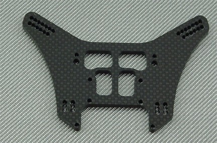 MUGEN MBX5T CARBON FIBER REAR SHOCK TOWER THIS 4mm THICK CARBON FIBER REAR SHOCK TOWERS REPLACES THE ALUMINUM MBX5T REAR SHOCK TOWER. THE SHOCK TOWER HAS ALL OF THE STOCK HOLE LOCATIONS PLUS AN EXTRA ROW OF MOUNTING HOLES FOR BETTER TUNING *** INCLUDED WITH ITEM *** 1 - CARBON FIBER SHOCK TOWER