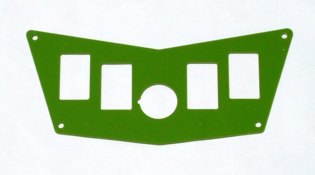 POLARIS RZR 570, 800, XP 900 GREEN FIBERGLASS G-10 4 SWITCH PANEL SWITCH PANEL DESIGNED FOR 4 SWITCHES AND 12V SOCKET *** INCLUDED WITH ITEM *** 1 - SWITCH PANELS *** NOTES *** DOES NOT INCLUDE SWITCHES. MADE IN USA